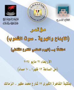 يُقام مؤتمر اليوم الواحد تحت عنوان (الإبداع والهوية.. صوت الشعوب)، وتتوزع فعالياته التي تبدأ من الثانية عشر ظهرًا حتى العاشرة مساءً بمكتبة القاهرة الكبرى بالزمالك، على أربع جلسات يشارك في تأطيرها متحدثون من أجيال متنوعة ومجالات فنية متعددة، وتصاحب الجلسات فعاليات وعروض فنية.