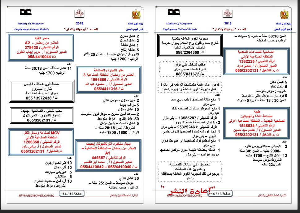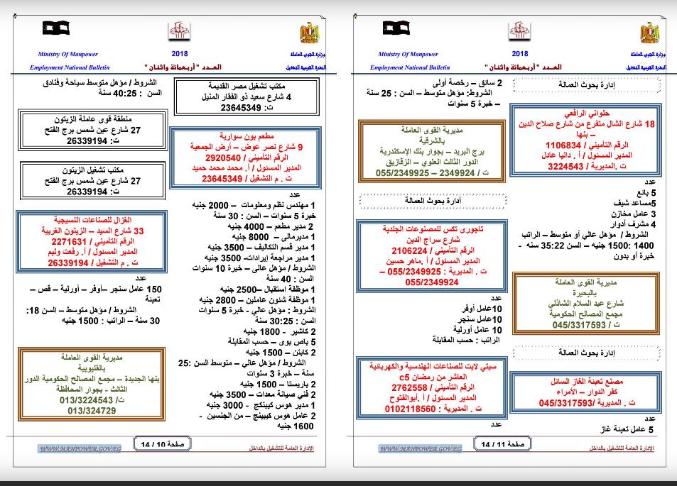 وننشر قائمة كاملة للنشرة القومية للتشغيل، التي تصدرها وزارة القوى العاملة، في ضوء سعيها إلى توفير عدد كبير من فرص العمل للشباب، حيث شملت القائمة على 11502 فرصة متوفرة للخريجين والمؤهلات المختلفة داخل البلاد.