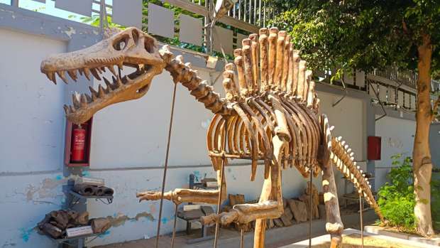 اشتملت المعروضات على هياكل عظمية لديناصورات ومستحثات حيوانية ونباتية وجدت على ارض مصر وبصفة خاصة الديناصور المصري الذي وجد في الفيوم واسمه العلمي “أرسينو تيير يوم زيتلي”وهو أشبه بالخرتيت، إضافة لأحجار متنوعة ونيازك، ومن أشهر الاحجار قطعة صغيرة من القمر موضوعة في بلورة أهديت لمصر من الولايات لمتحدة بعد نجاح رحلة “ابولو 11” من الهبوط على القمر والحصول على بعض أحجاره.