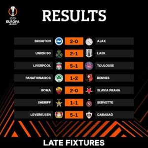 في الجولة الثالثة لدوري أبطال أوروبا فازت أندية ليفربول الإنجليزي وليفركوزن الألماني وروما الإيطالي وتصدروا مجموعتهم بالعلامة الكاملة.اما نادي وستهام الإنجليزي يتلقي أول خسارة له في الجولة الثالثة أمام نادي اولمبياكوس اليوناني ولكنه يظل متصدر لمجموعته. ونادي بريتون الإنجليزي يحقق أول انتصار له أمام نادي ايكس أمستردام الهولند ، وكان بريتون قد هزم أول جولة ثم تعادل في الثانية ليصبح أربع نقاط.