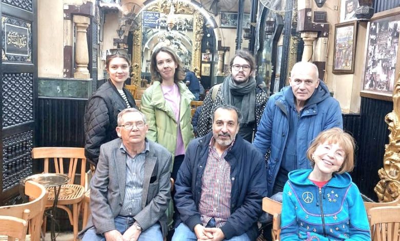 ضم وفد الكُتاب يكاترينا سوبول، مارينا موسكفينا، أفاناس ماميدوف، فلاديمير بلياكوف، ديمتري ستريشنيف، والشاعر/ كيريل كورتشاجين بصحبة يكاترينا تشوينكوفا مسئولة الوفد وشريف جاد مسئول النشاط الثقافي بالمركز الثقافي الروسي بالقاهرة ورئيس جمعية الخريجين، حيث أكد الوفد ان زيارة القاهرة التاريخية تعد رحلة خيالية وكأننا نعود بالتاريخ الى زمن ألف ليلة وليلة. وحرص الوفد على الدخول للمساجد والاماكن الاثرية للاستماع الى المعلومات التاريخية عن كل مبنى والتقاط الصور التذكارية. واحتسوا الشاي بقهوة الفيشاوي. واندهشوا من تاريخ تأسيسها.