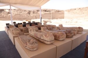 الكشف عن ١٥٠ تمثال برونزي لآلهة مصرية قديمة ة ٢٥٠ تابوت خشبي ملون مغلق يحتوي علي مومياوات