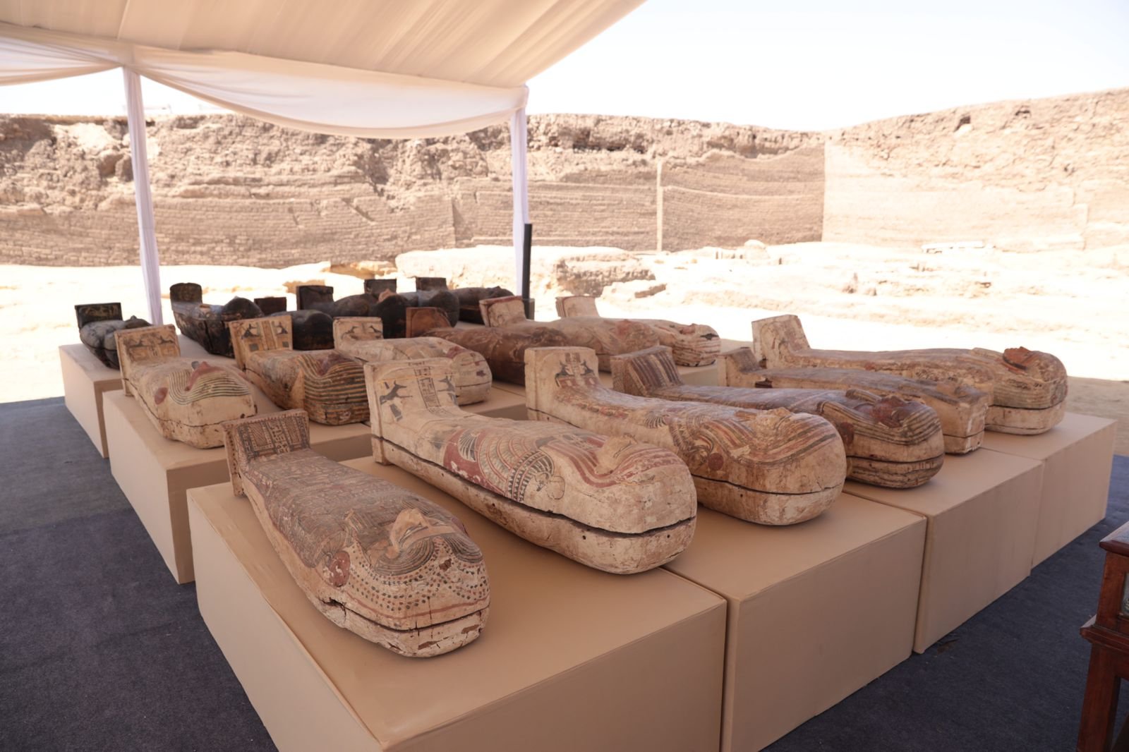 الكشف عن ١٥٠ تمثال برونزي لآلهة مصرية قديمة ة ٢٥٠ تابوت خشبي ملون مغلق يحتوي علي مومياوات