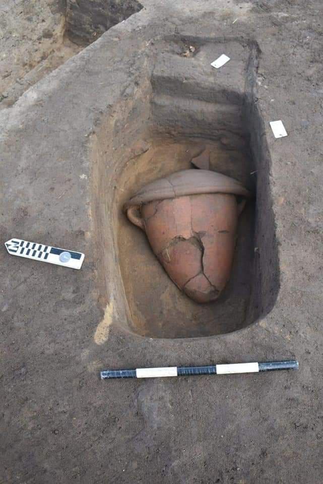 وقالت د. نادية خضر رئيس الإدارة المركزية للوجه البحري بالمجلس الأعلى للآثار، أن المقابر الخاصة بمرحلة عصر الانتقال الثاني ( فترة الهكسوس)، تم الكشف عن 37 مقبرة لها منها 31 عبارة عن حفر شبه مستطيلة الشكل تتراوح أعماقها بين 20 سم و 85 سم، وتتميز بأن جميع دفناتها في وضع ممدد والرأس يتجه نحو الغرب والوجه إلى أعلى. هذا بالاضافة إلى العثور على تابوت من الفخار بداخله دفنة لطفل، ومقبرتين لطفلين من الطوب اللبن على شكل بناء مستطيل موضوع بداخله دفنات الطفلين وبعض الاثاث الجنائزي؛ منها إناء فخاري صغير الحجم وحلق من الفضة، فضلا عن بقايا دفنة لطفل رضيع داخل إناء كبير من الفخار. وقد تم وضع الأثاث الجنائزي داخل الإناء والذي تمثل في إناء صغير من الفخار أسود اللون .
