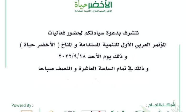 تدشين المؤتمر العربي الأول للتنمية المستدامة والمناخ تحت شعار ” الأخضر حياة”