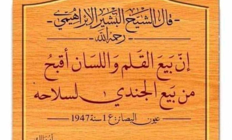 ورحم الله الشيخ محمد البشير الإبراهيمي الذي قال :” أن بيع القلم واللسان أقبح من بيع الجندي لسلاحه “.