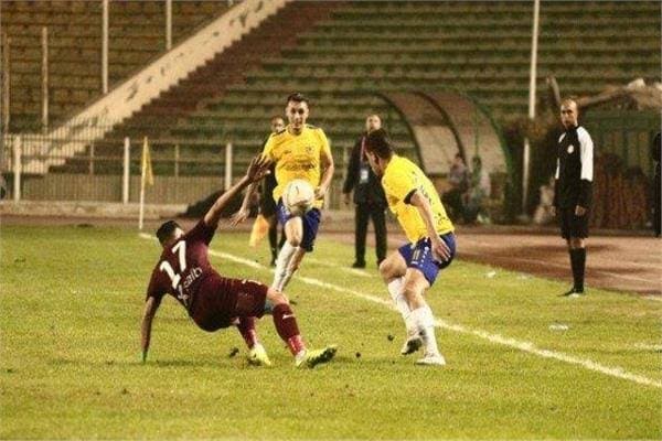 ونجح عصام صبحي في تسجيل التقدم لفريق المقاصة في الدقيقة 56 على يمين محمد صبحي.