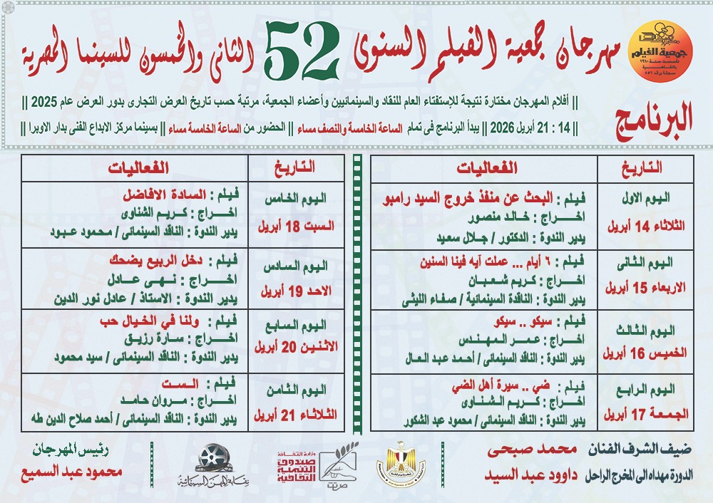 المكرمون بمهرجان جمعية الفيلم المصري للسينما المصرية ، نُكرّم أحد الأسماء التي كان لها دور محوري في تطوير البنية التكنولوجية لصناعة السينما في مصر… اسم عمل في صمت، لكنه ترك أثرًا واضحًا في كل شاشة عرض. الفنان محمد صبحي ضيف شرف المهرجان.
