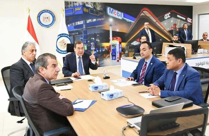 واستعرض الوزير ما تقدمه المنظومة من تقارير ومدى جاهزية الغرف واستدامة العمل بها على مدار الساعة والتدريب والتأهيل الخاص بكوادرها واستمع الوزير والحضور إلى شرح توضيحى عبر تقنية الفيديو كونفرانس من المهندس أيمن عبدالبديع نائب الرئيس التنفيذى للهيئة المصرية العامة للبترول للنقل والتوزيع وفريق عمل غرفة المنظومة الرئيسية بالهيئة حول توافر المنتجات البترولية بالمستودعات والمحطات واستقرار الإمدادات، كما استعرض مع رؤساء شركات التعاون ومصر والنيل للبترول المهندس ناصر شومان والمهندس محمد ماجد بخيت والمهندس أحمد عيد وفرق عمل الغرف الرئيسية بكل شركة حول عملهم ضمن المنظومة.