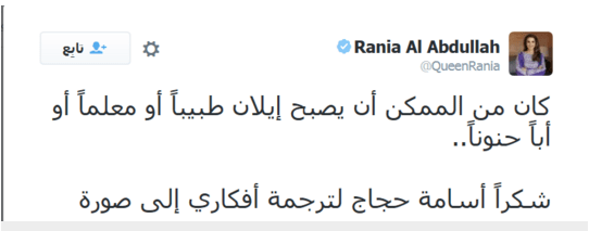 نشرت الملكة رانيا السبت 16 يناير 2016 رسما من فكرتها على حسابيها الرسميين في تويتر وفيسبوك للرد على كاريكاتير نشرته “شارلي ايبدو” الفرنسية تناول الطفل السوري اللاجئ ايلان الكردي الذي قضى غرقا على شاطئ تركي في 2015.