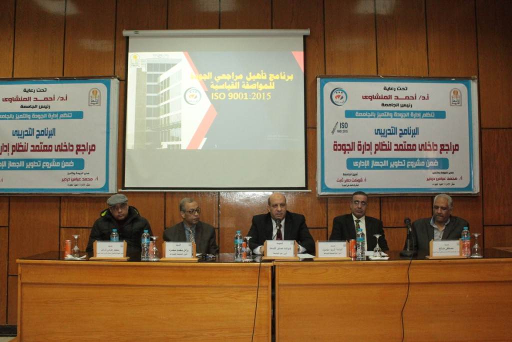 من جهة اخرى نظمت إدارة الجودة والتميز بجامعةأسيوط اليوم الأربعاء برنامج تدريبي تحت عنوان مراجع داخلي معتمد لنظام إدارة الجودة ضمن مشروع تطوير الجهاز الإداري بقاعة المتحف بالمبنى الإداري بجامعة أسيوط وذلك في إطار حرص الجامعة على العمل بأنظمة الجودة، وتطبيق معاييرها على جميع المستويات