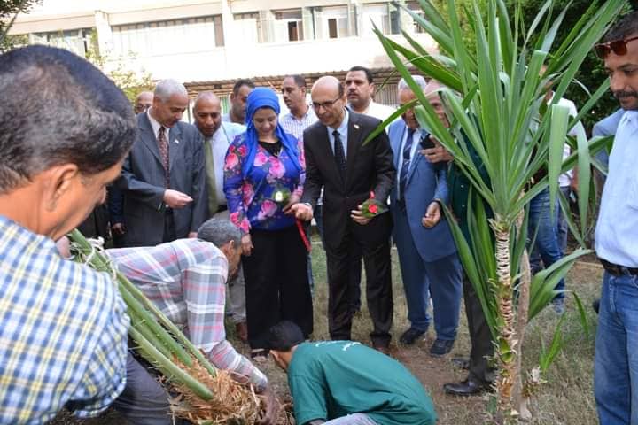 وأوضحت الدكتورة مها غانم علي حرص إدارة الجامعة علي المشاركة في كافة المبادرات المجتمعية التي لها مردود مثمر وفعال للمساهمة في التوسع في المساحات الخضراء التي تستهدف الحد من مخاطر الإحتباس الحراري والتغيرات المناخية وترشيد إستخدام المياه , ونشر الوعي بالحفاظ علي الموارد الطبيعية وتعظيم الإستفادة منها , مؤكدة علي حرص إدارة الجامعة تحت قيادة الدكتور أحمد المنشاوي رئيس الجامعة علي المشاركة في زراعة الأشجار المثمرة تفعيلاً للعمل الجماعي وتعزيز روح الولاء والإنتماء وحب الوطن