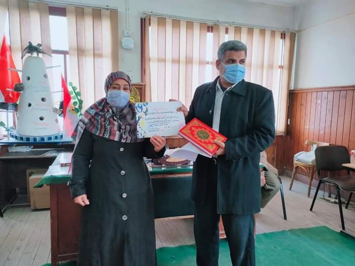 كرم اليوم ٢٠ يناير ٢٠٢١ الأستاذ عزب عبد المحسن عزب مدير إدارة السادات التعليمية طلاب مدرسة خالد بن الوليد للتعليم الأساسى المرحلة الابتدائية وهم الطالبة راندا محمد نجيب الفائزة بالمركز الأول على الإدارة والخامس على مستوى الجمهورية في مسابقة الكاريكاتير أون لاين.