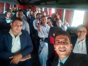 كما يقوم المهندس محمد ربيع بمتابعة التحركات باستمرار مع كل من أ. علاء حسن وأ. كريستين ماهر ود. شيماء الكرش وأ. إيناس صفوت وأ. سامر النجار وأ. حسام الجندي مسئولي التحركات والمتابعة وأعضاء مؤسسة حياة كريمة بالمنوفية، حيث أكد الجميع أن التحركات تسير بشكل منتظم متوجهين إلى استاد القاهرة.