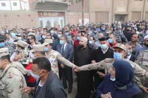 وبدأت الجنازة العسكرية بمسقط رأس الشهيد بقرية أبنهس بقويسنا وسط جمع من الأهالى مرددين هتافات معادية للإرهاب منها ” لا إله إلا الله والشهيد حبيب الله ، يا شهيد نام وارتاح وإحنا نكمل الكفاح “.