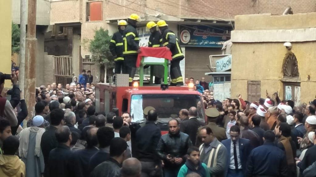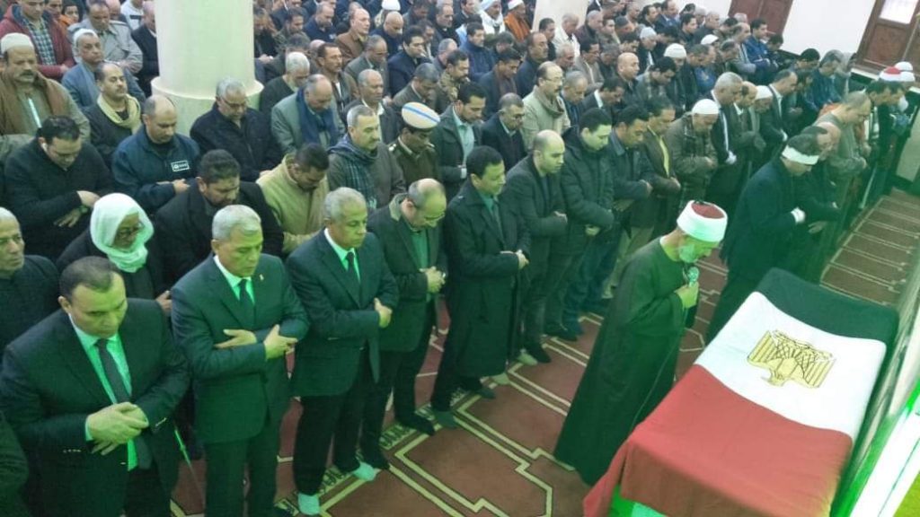 تقدم اللواء سعيد عباس محافظ المنوفية واللواء سمير أبوزامل مدير أمن المنوفية الجنازة العسكرية لتشيع الجثمان وكوكبة من القيادات المجتمعية .