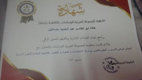اجتازت الاستاذة هالة أبو القاسم عبد الحميد الموجهة بإدارة ابوتيج التعليمية بمحافظة أسيوط والكاتبة بجريدة وضوح ، برنامج إعداد القيادات الإدارية وتأهيلهم للتحول الرقمي .
