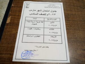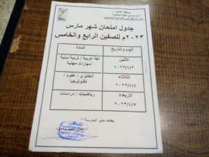 النقراشي الابتدائيه تحدد مواعيد اختبارات شهر مارس للصفوف الرابع والخامس والسادس