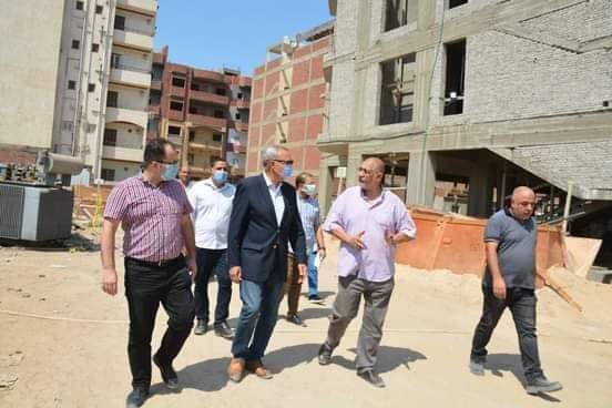 واستمع المحافظ من مقاول المشروع أنه تم الانتهاء من أعمال صب الدور الثالث والبدء في إضافه أعمال جديدة بإضافة مبنى مكون من دور أرضي ودورين علوي وتم توريد المصاعد والتكييفات