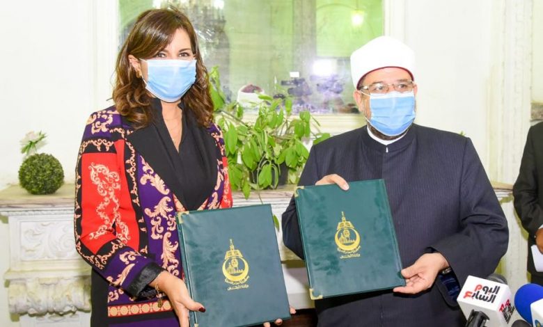 استمرارا لفعاليات المبادرة الرئاسية لمكافحة الهجرة غير الشرعية “مراكب النجاة”، وقعت السفيرة نبيلة مكرم عبد الشهيد وزيرة الدولة للهجرة وشئون المصريين بالخارج، والدكتور محمد مختار جمعة، وزير الأوقاف، بروتوكول تعاون بين الوزارتين للاستفادة من جهود علماء وزارة الأوقاف في نشر التوعية الدينية بمخاطر ظاهرة الهجرة غير الشرعية بالمحافظات الأكثر تصديرا لها.