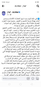 أخيرا: نوجه رسالة الى من يهمه الأمر بأن النجم محمد ابو تريكة لن يكون وحده ابدا في هذه المعركة فالملايين من جماهير الهلال السوداني تقف معه و خلفه بكل قوة و حزم و نوجه رسالة الى جميع الاندية العربية و الجماهير العربية بضرورة الوقوف و الدعم للكابتن الخلوق فيما يتعرض له من ضغوطات من بعض الفاسدين حول العالم الذين يريدون للرذيلة ان تنتشر و للفضيلة ان تنحسر و لكن هيهات طالما ان فينا رجل بقيمة و قامة ابو تريكة.