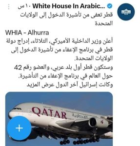 امريكا تعفي مواطني قطر من تأشيرة الدخول..لتكون الدولة العربية الأولي والوحيدة المعفاة