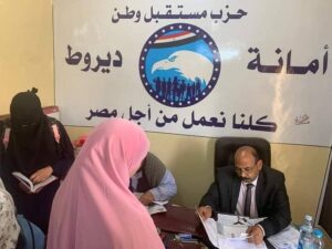 يأتى ذلك فى في إطار المشاركات والأنشطة التثقيفية والخدمات المجتمعيه لحزب مستقبل وطن برئاسة المستشار عبد الوهاب عبد الرازق وبرعاية المهندس اشرف رشاد الأمين العام للحزب والنائب الأول لرئيس الحزب وبرعاية المهندس ياسر عمر امين حزب مستقبل وطن باسيوط ووكيل لجنة الخطة والموازنة بمجلس النواب