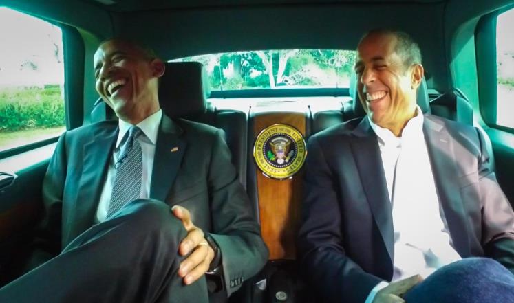 في أحدث حلقة من حلقات برنامج (كوميديانز إن كارز جتينج كوفي) جلس الرئيس الأمريكي باراك أوباما إلى جوار الممثل الكوميدي والإعلامي جيري ساينفيلد داخل سيارة من مقعدين انطلق بها ساينفيلد.
