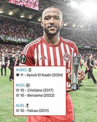 اولمبياكوس بقيادة النجم المغربي الكعبي أول نادي يوناني يتوج ببطولة أوروبية