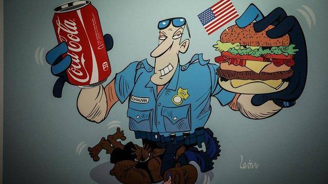تستغل إيران احتجاج ” جورج فلويد ” لتصوير الولايات المتحدة كدولة عنصرية تنتهك حقوق الإنسان ، وفي عرض رسوم متحركة في طهران ، تم تصوير ترامب على أنه هتلر.