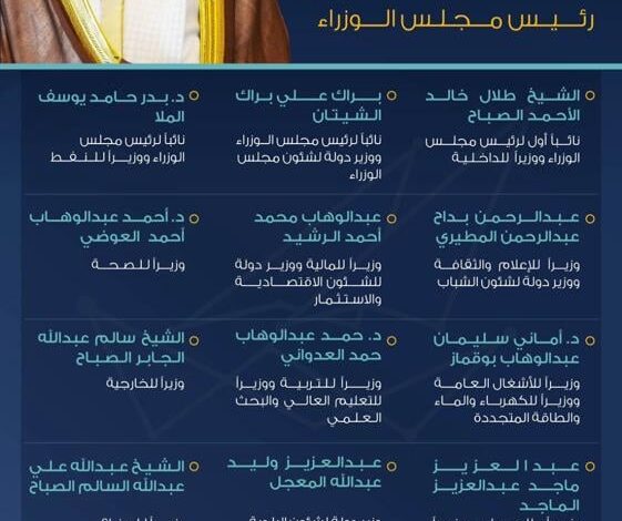 بالأسماء : التشكيل الجديد للحكومة الكويتية برئاسة الشيخ أحمد نواف الصباح