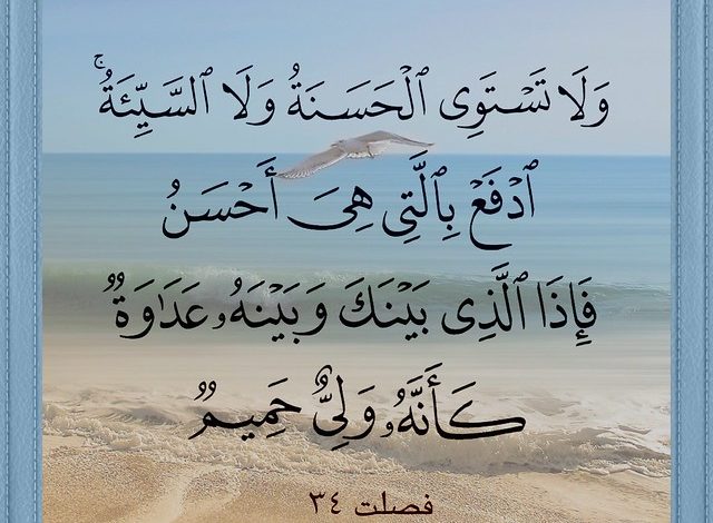 - يقول الله تعالى: ﴿ولا تستوي الحسنة ولا السيئة ادفع بالتي هي أحسن فإذا الذي بينك وبينه عداوة كأنه ولي حميم﴾ هذه الآية العظيمة ترسم لنا طريقًا لتحويل العداوة إلى مودة، والخصام إلى صداقة، فقط عبر الإحسان في الرد والتعامل.