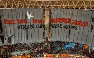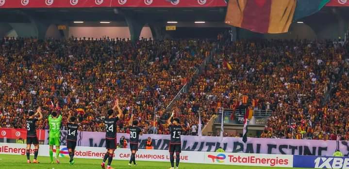 بالصور:جماهير الترجي التونسي تعزف سيمفونية رائعة لدعم غزة بالتيفو والبنرات في مباراة فريقها والأهلي