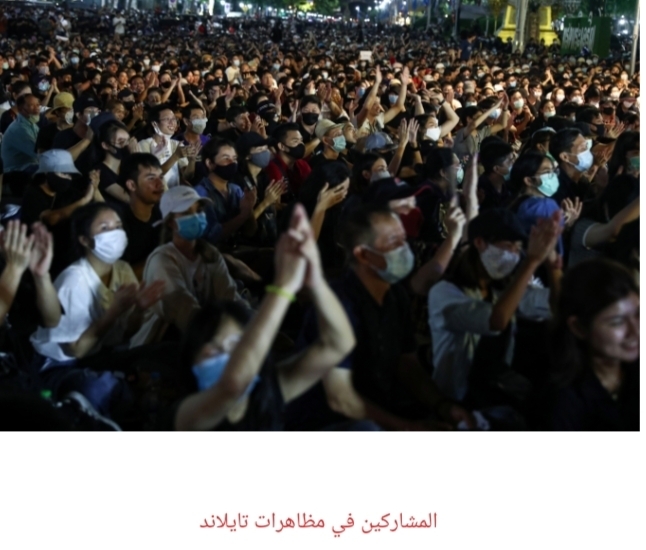 أكثر من عشرة آلاف من المتظاهرين التايلانديين هتفوا “تسقط الديكتاتورية” و “البلد ملك الشعب” فى احتجاج مناهض للحكومة في بانكوك في أكبر مظاهرة مناهضة للحكومة.