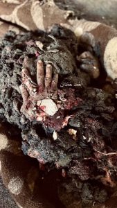 بالصور: إجرام الكيان الصهيوني في مجزرة الفجر…..جثث متفحمة واشلاء جثث