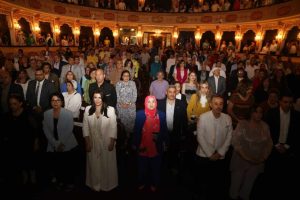 وأكد فهمي على أنه كان حريصا على تكريم اسم الموسيقار الراحل عمار الشريعي داخل هذا الصرح التنويري الكبير، نظرا لقيمة وقامة الشريعي الفنية، وأن هذا الحضور الهائل لتكريم اسم الراحل عمار الشريعي؛ يشير إلى كم تأثير إبداع هذا الفنان داخلنا جميعا، واستطرد إيهاب فهمي قائلا: أعتذر لكل الجمهور الذي حضر اليوم إلى المسرح القومي لحضور هذا التكريم، ولم يستطيع الدخول، حرصا على سلامتهم جميعا، فالمسرح القومي اليوم كما ترونه كامل العدد، وفي نهاية كلمته شكر إيهاب فهمي؛ فرقة “أعز الناس” للموسيقى والغناء، وكافة العاملين بالمسرح القومي، وكذلك العاملين بالمركز القومي للمسرح والموسيقى والفنون الشعبية، لمشاركتهم جميعا في إقامة هذا الاحتفالية.