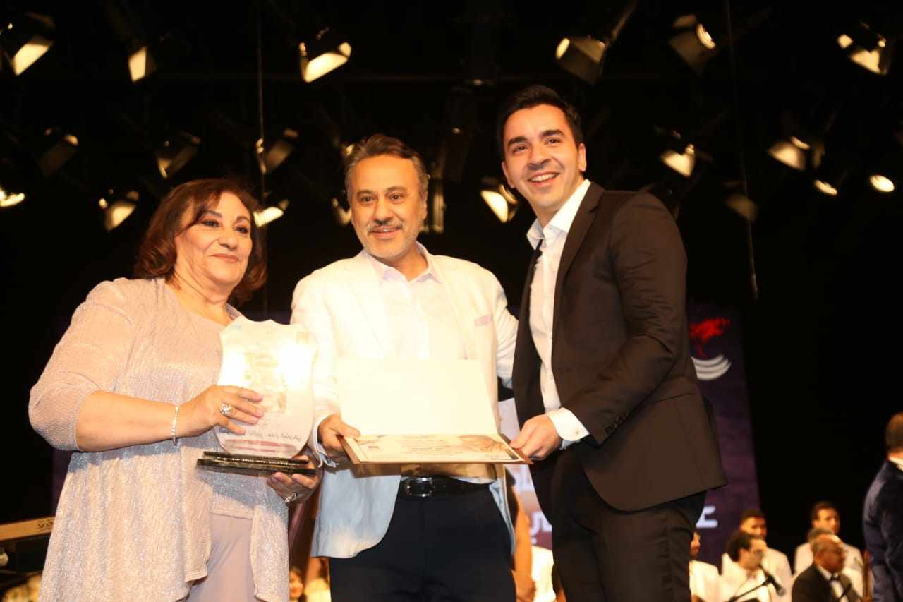واختتم الحفل بإهداء الفنان إيهاب فهمي؛ لأسرة الموسيقار الكبير الراحل عمار الشريعي (الإعلامية الكبيرة ميرفت القفاص- أرملة الراحل عمار الشريعي، ونجله مراد الشريعي) درع تذكاري وشهادة تقدير لرحلة العطاء الفنية للراحل عمار الشريعي.
