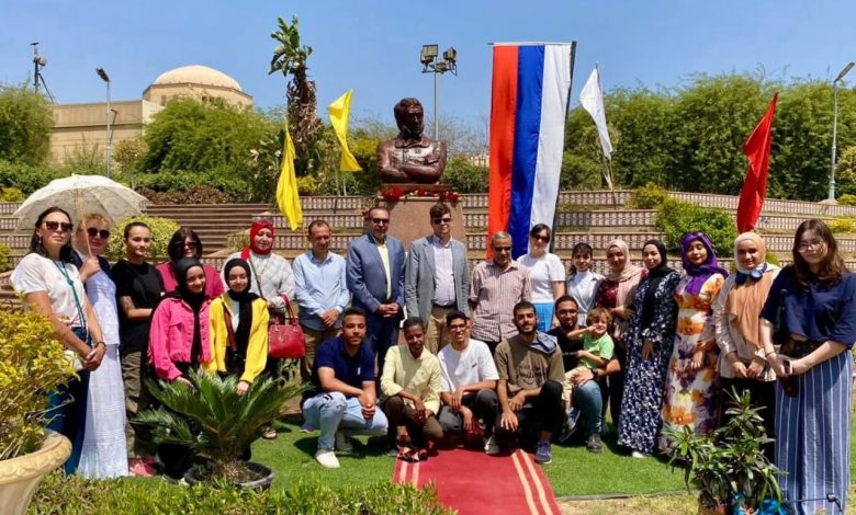 وذلك في احتفالية اقيمت بحديقة الحرية بالقاهرة حيث تمثال الشاعر الكبير الكسندر بوشكين وذلك بحضور ارسيني ماتيوشينكو القائم بأعمال مدير المراكز الثقافية الروسية في مصر، وشريف جاد رئيس الجمعية المصرية لخريجي الجامعات الروسية والسوفيتية ،واولجا بيسكيلينا رئيس الجالية الروسية في مصر، واعضاء جمعية الصداقة المصرية الروسية ونادي الشباب بالبيت الروسي واساتذة اللغة الروسية حيث تم وضع الزهور امام تمثال بوشكين.