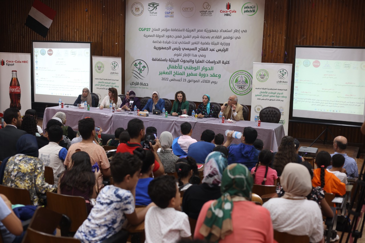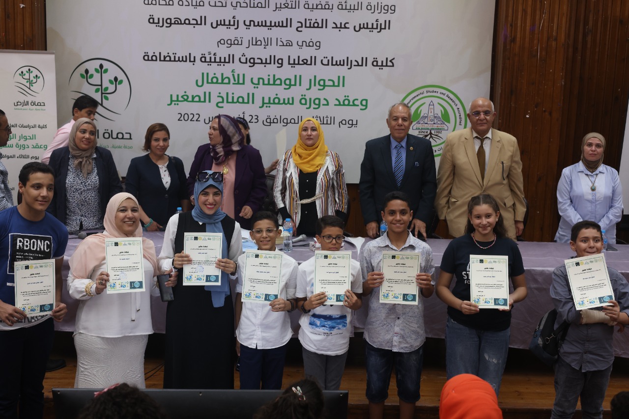 أستضافت كلية الدراسات العليا والبحوث البيئية بجامعة عين شمس أمس الثلاثاء ٢٣ /٨ /٢٠٢٢م الحوار الوطني للأطفال وعقد دورة ” سفير المناخ الصغير ” وهذا الحوار بتديره وزارة البيئة مع جمعية عين البيئة بالشراكة مع كلية الدراسات العليا بجامعة عين شمس .