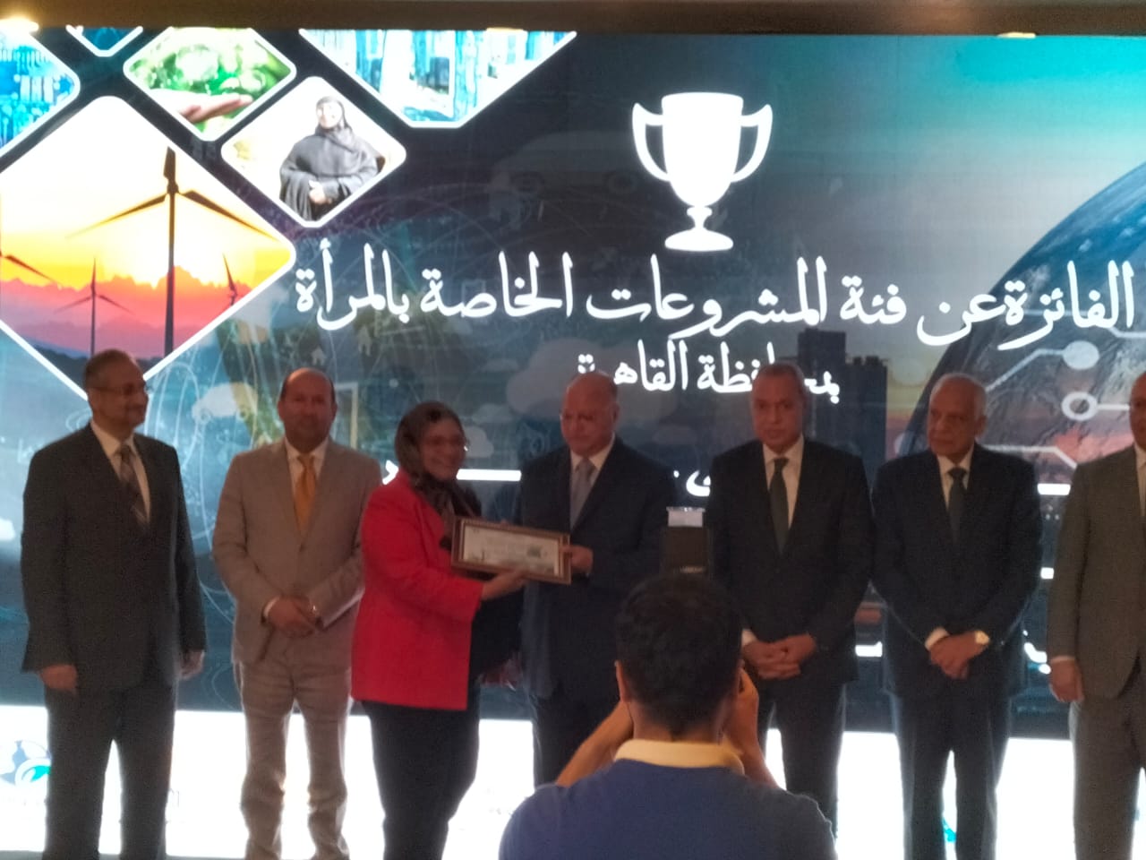 وأعربت عن سعادتها البالغة بالمشروعين الذين حصلوا على أفضل مشاريع من ال٦ مشروعات المتوسطة ، والمشروع الأول وهو تحويل محركات السيارات إلى محركات تعمل بالطاقة المتجددة مما يساهم في تقليل الإنبعاثات الكربونية ، والمشروع التاني كأفضل مشروع من إنتاج كلية الدراسات العليا والبحوث البيئية وهو وحدة التحول الأخضر وهو مشروع ذات أنماط مختلفة لإعادة التدوير بالإضافة إلى الدور التوعوي فهو مشروع تعليمي .