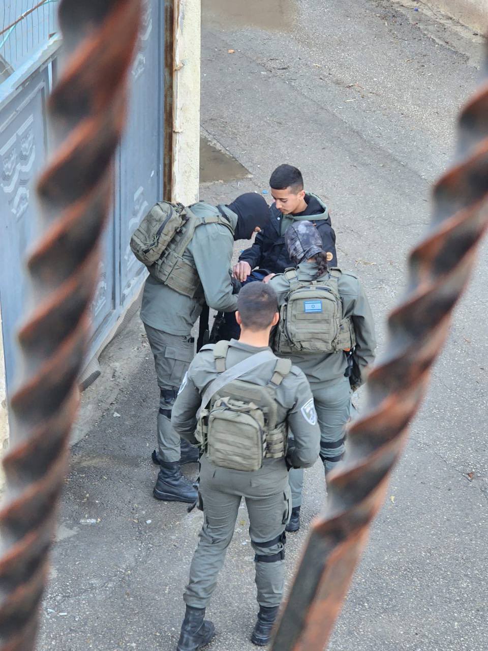 الصور لجنود الاحتـ ـلال يضيِّقون على أهالي منطقة كرم الشيخ المحيطة بمنزل الفتى الجريح محمود عليوات”.