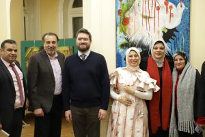 وقدم دينيس برونيكوف التهنئة على نجاح المعرض واعرب عن اعجابه الشديد بالاعمال الفنية.