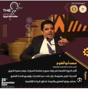 “في عام 2025، سنبدأ إنتاج سيارة ركاب جديدة محليًا، ما يعكس رؤيتنا لمستقبل أكثر استدامة وابتكارًا، ونسعى لجعل مصر مركزًا إقليميًا لصناعة السيارات.”