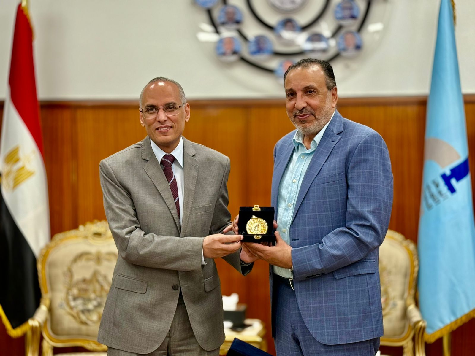 وفي الختام تم إهداء درع المركز الى الضيفين، تكريمًا لدورهما المتميز في دعم العمل الثقافي الدولي، وتعزيز العلاقات الثنائية بين البلدين في مجالات البحث العلمي والثقافي.