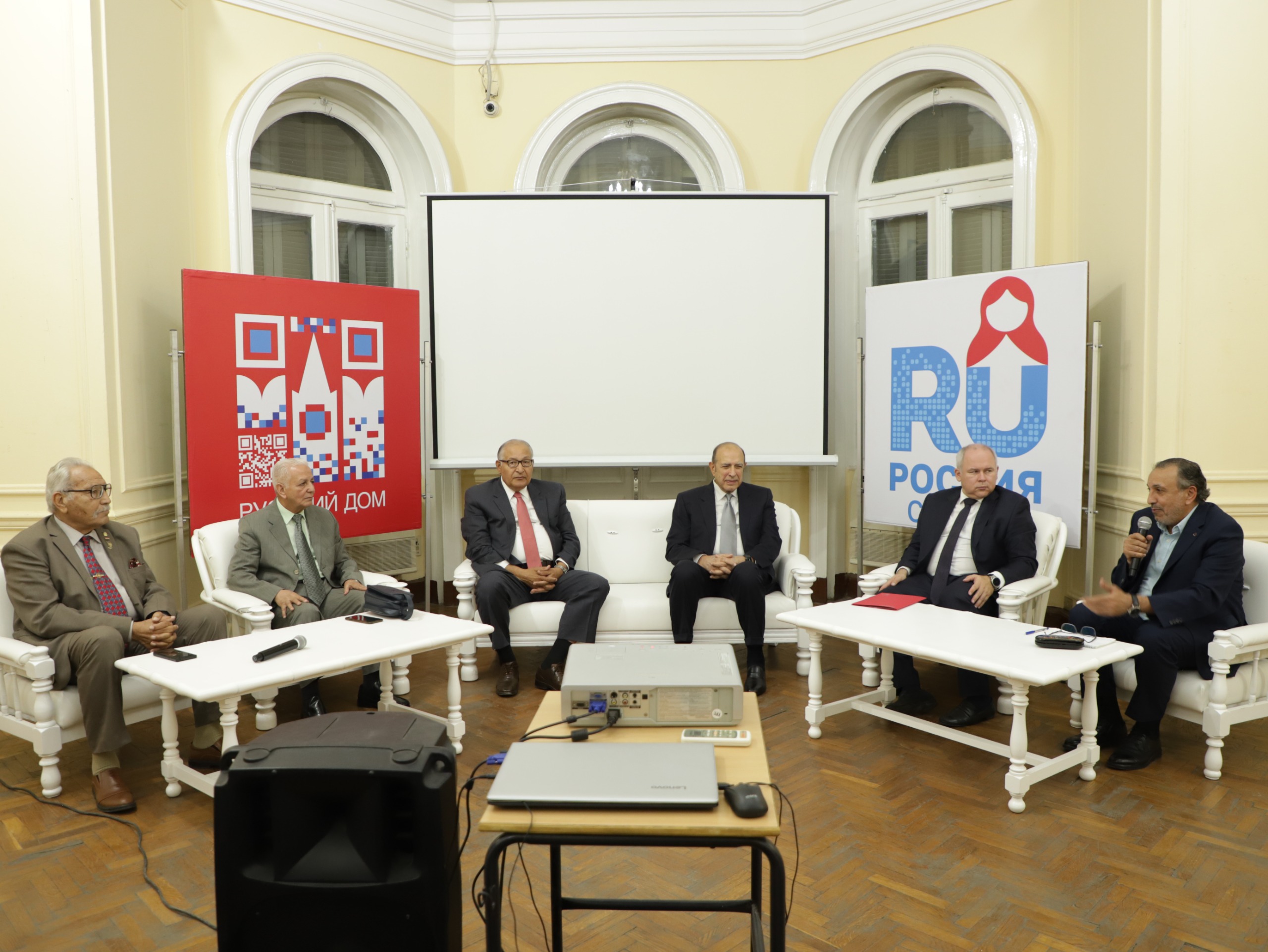 شهد البيت الروسي بالقاهرة احتفالية رائعة بمناسبة الذكرى الــ 52 على انتصارات اكتوبر المجيدة، نظمتها جمعية الصداقة المصرية الروسية برئاسة د. ابراهيم كامل وبحضور فاديم زايتشيكوف مدير المراكز الثقافية الروسية في مصر، ود. عزت سعد سفير مصر السابق في موسكو، واللواء حمدي لبيب الملحق العسكري السابق في كوريا الشمالية، ادار اللقاء شريف جاد الامين العام لجمعية الصداقة ومدير النشاط الثقافي بالبيت الروسي.