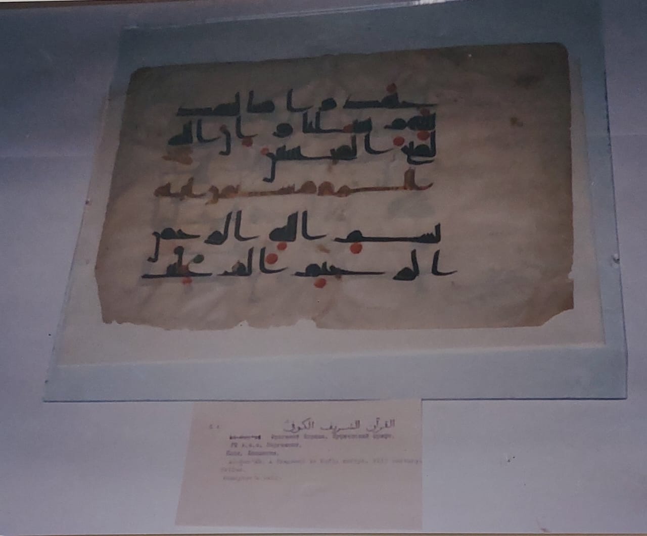 ضم المعرض صور لديوان الاخطل وهو محفوظ بمعهد الدراسات الشرقية في سان بطرسبرج ، الذى يضم مجموعة من كنوز المخطوطات العربية، وكذلك صورة أرشيفية لكتاب ” القانون في الطب” لابن سينا ، وصفحة من القرأن الكريم بالخط الكوفي ، وصورة لمسجد موسكو والذى يعد من اقدم المساجد بالعاصمة.
