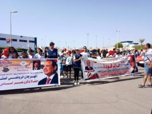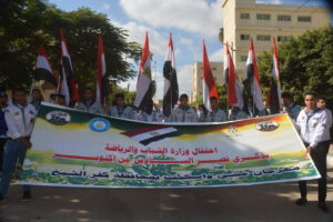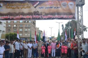 وفي بورسعيد شهد اللواء عادل الغضبان محافظ بورسعيد مسيرة مشي تحت عنوان “العبور للجمهورية الجديدة”، بالتعاون مع مديرية الشباب والرياضة ببورسعيد برئاسة عبدالفتاح حافظ، ومشاركة الإدارة العامة للقاعدة الشعبية في تنفيذ المسيرة التي رسمت لوحة فنية تعبر عن العبور الجديد.