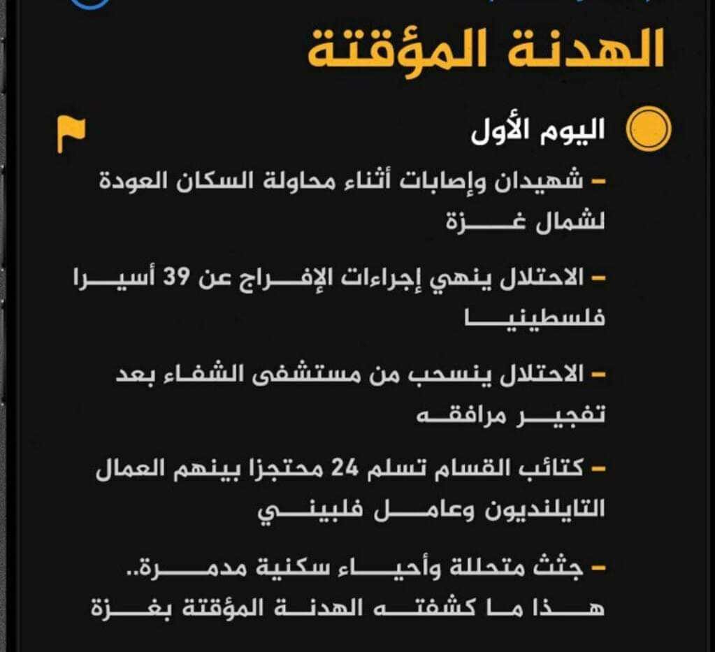 جاءت أبرز تطورات اليوم الأول من الهدنة المؤقتة في غزة كالتالي :