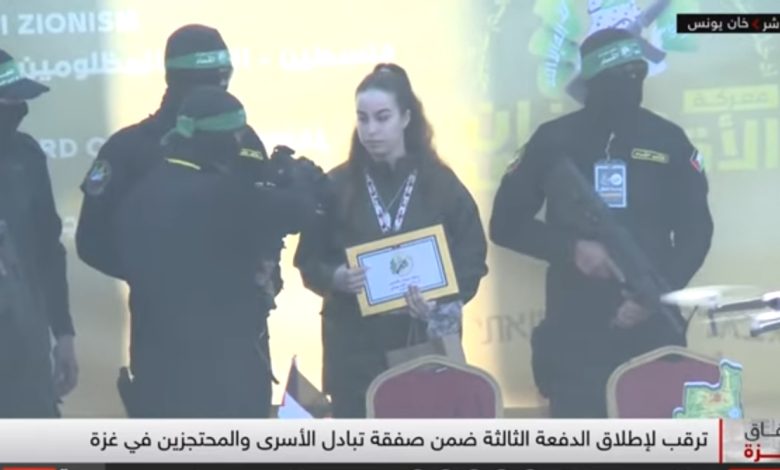 بالفيديو:حماس تسلم الأسيرة آغام بيرغر للصليب الأحمر في جباليا