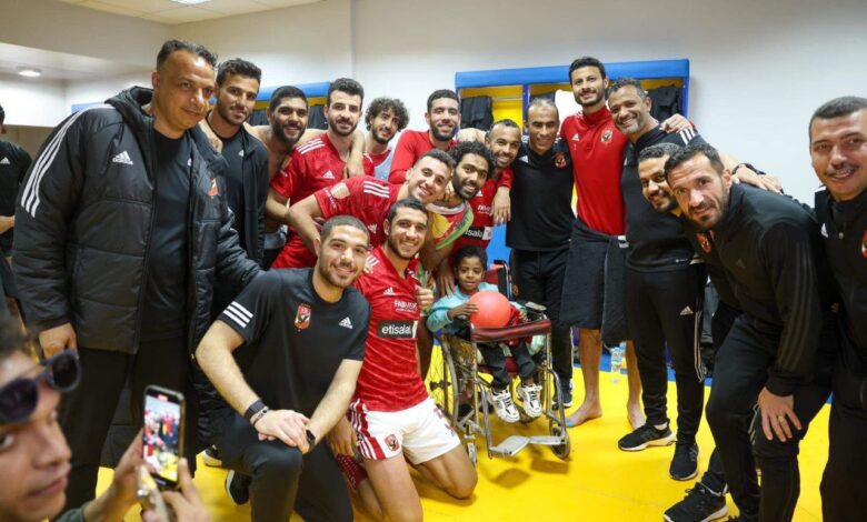 بالفيديو:لاعبو الأهلي يلبون طلب طفل من ذوي الهمم للتصوير معهم